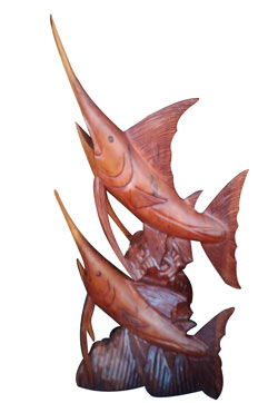 fish marlin standing carving from suar wood